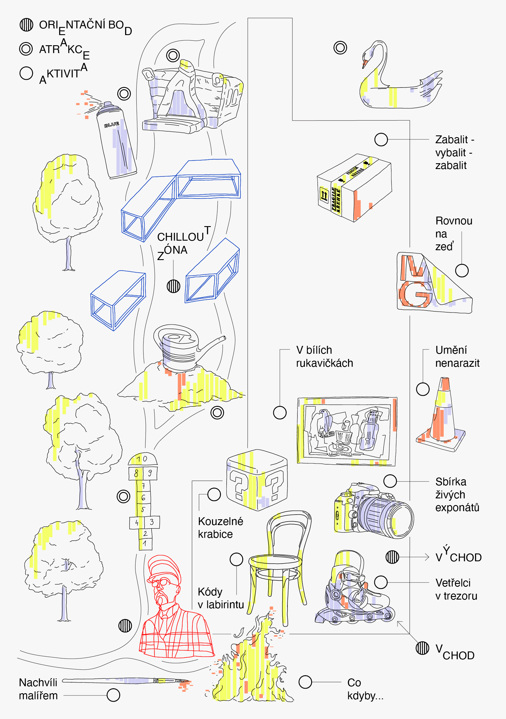 Map for Open Depo Festival organised by Moravská galerie (CZ) as an opening of the gallery’s depository space.
